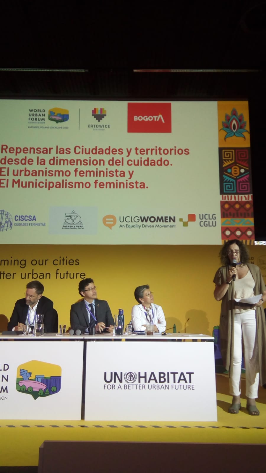 El sábado 25 se llevó a cabo "Debates antes del 11 Foro Urbano Mundial", jornada organizada por la Escuela Técnica Wyższa de Katowice. Se realizaron dos sesiones principales: "Mujeres construyendo ciudades sostenibles" y "Mujeres enfrentando la guerra", con oradoras de diferentes partes del mundo, entre las que se destacaron Ana Falú, directora de CISCSA Ciudades Feministas, y Maite Rodriguez Blandon, coordinadora regional de la Red Mujer y Hábitat de América Latina y el Caribe.
